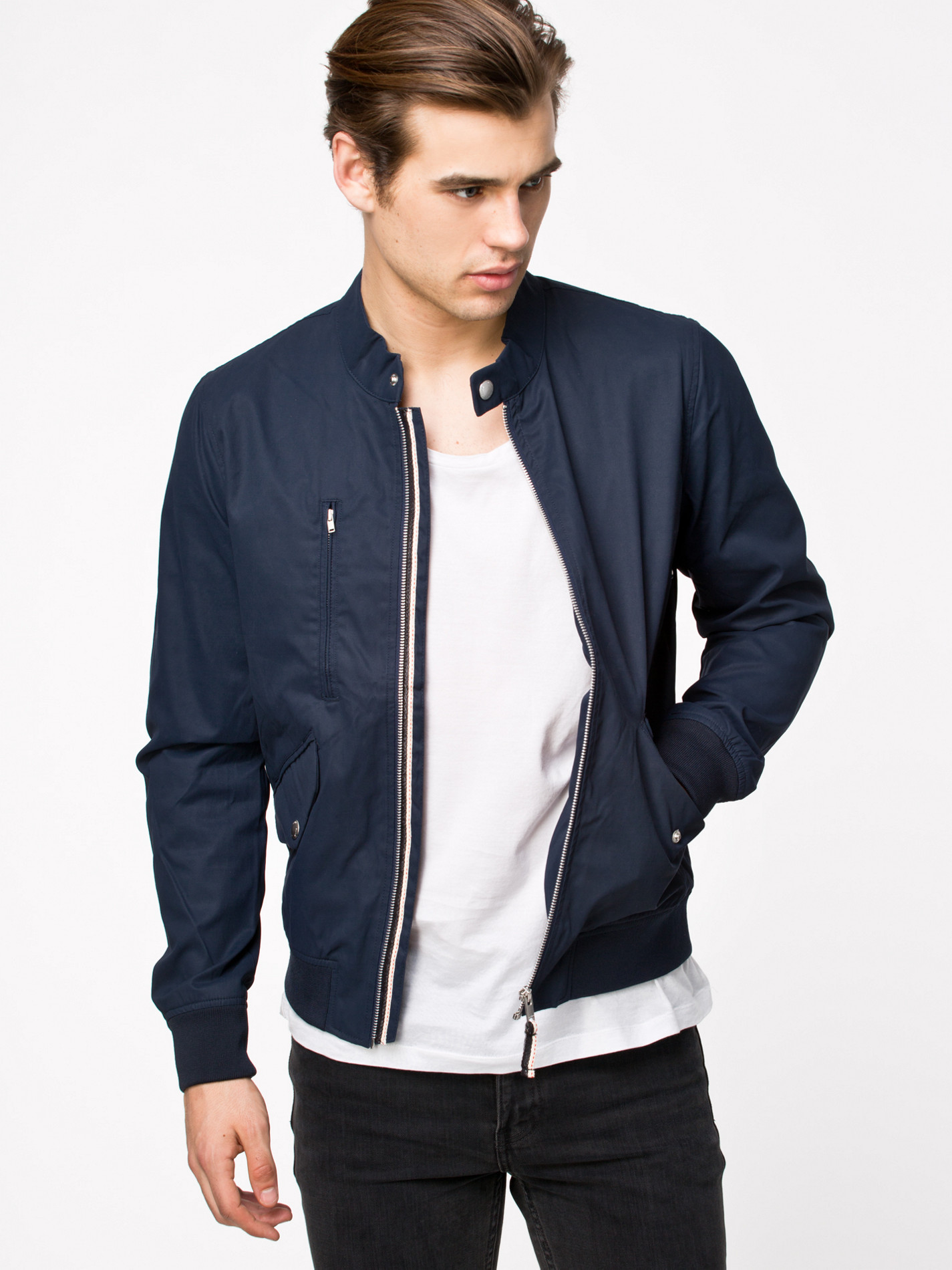 Jacket by ELVINE. Zipper fastening to front and popper button fastening at collar. Elvine finds inspiration in everyday life. This brand reach people on the street and offers clothing inspired by a passion for graffiti and the raw Gothenburg street culture teamed with solid craftsmanship.